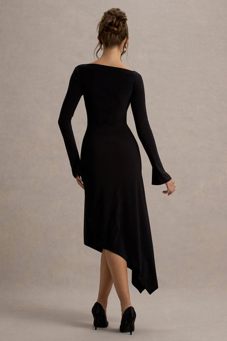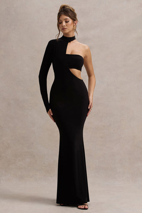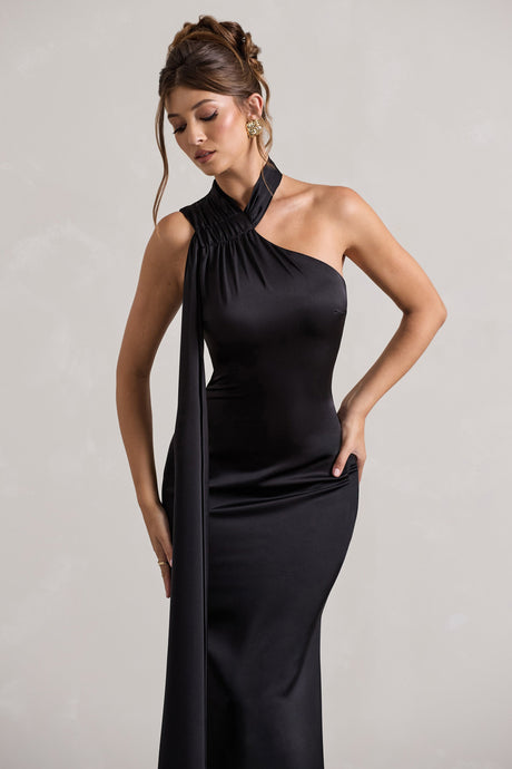 Select | Black Asymmetrical Extreme Split Satin Maxi Dress