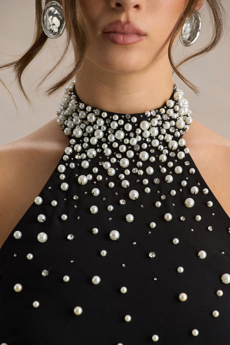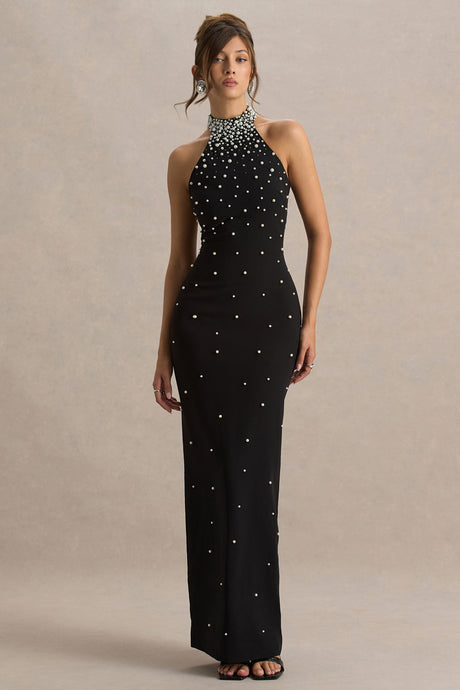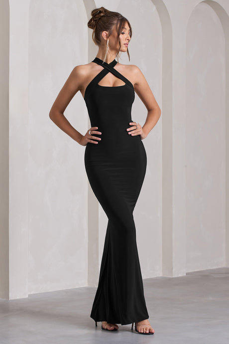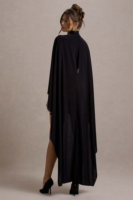 Daphne | Black Bandeau Corset Thigh Split Maxi Dress