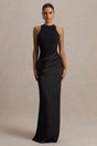 Akari | Black High-Neck Maxi Dress With Satin Skirt