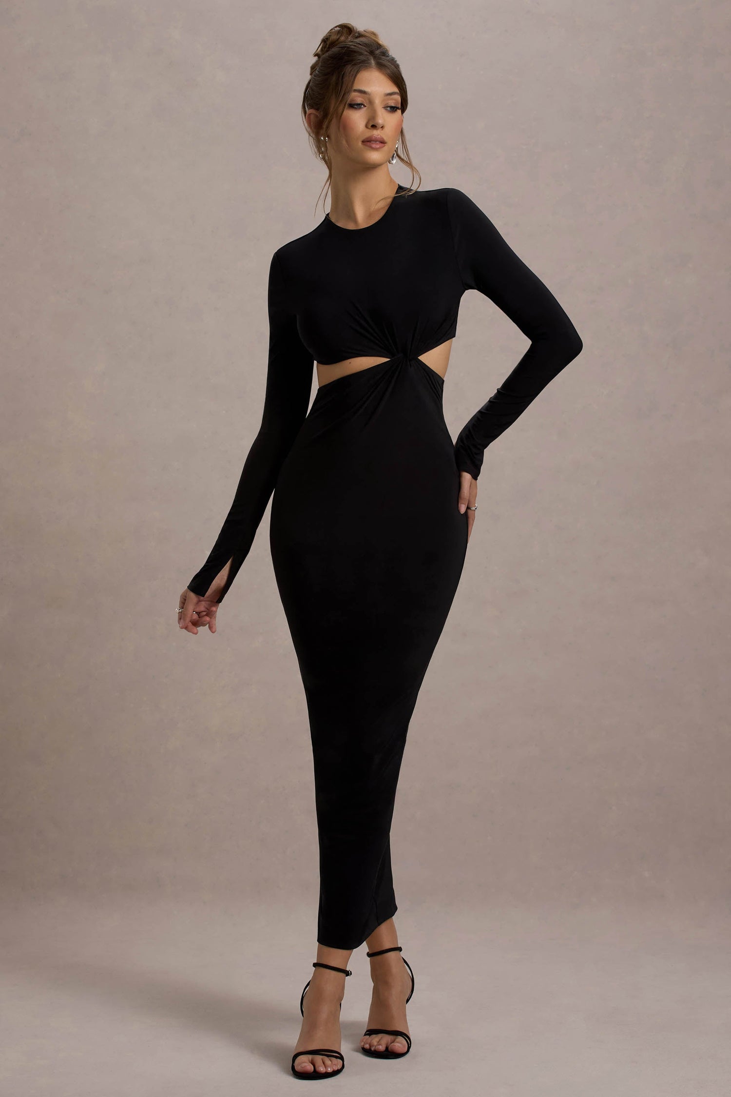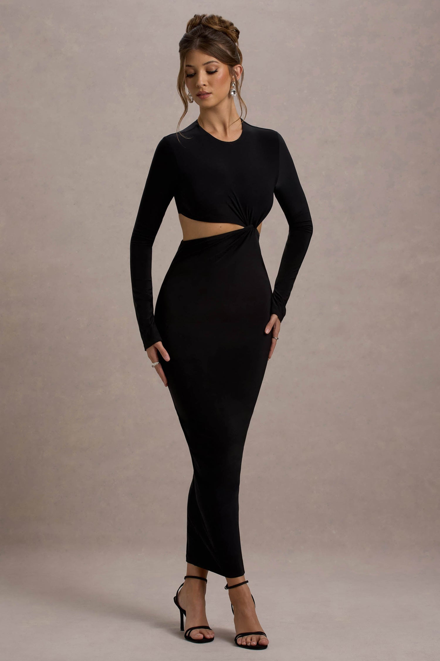 Attina | Black Long-Sleeve Twisted Cut-Out Maxi Dress