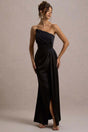 Cairo | Black Satin Strapless Draped Maxi Dress