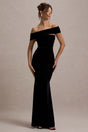 Candela | Black Velvet Asymmetric Bardot Maxi Dress