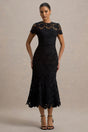 Clarissa | Black Lace Short-Sleeve Pleated Midi Dress