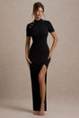 Claudetta | Black High-Neck Short-Sleeve Split Maxi Dress