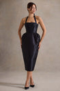 Cosetta | Black Halter-Neck Midi Dress With Tulip Skirt