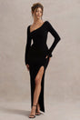 Cosmos | Black Asymmetric Long-Sleeve Split Maxi Dress