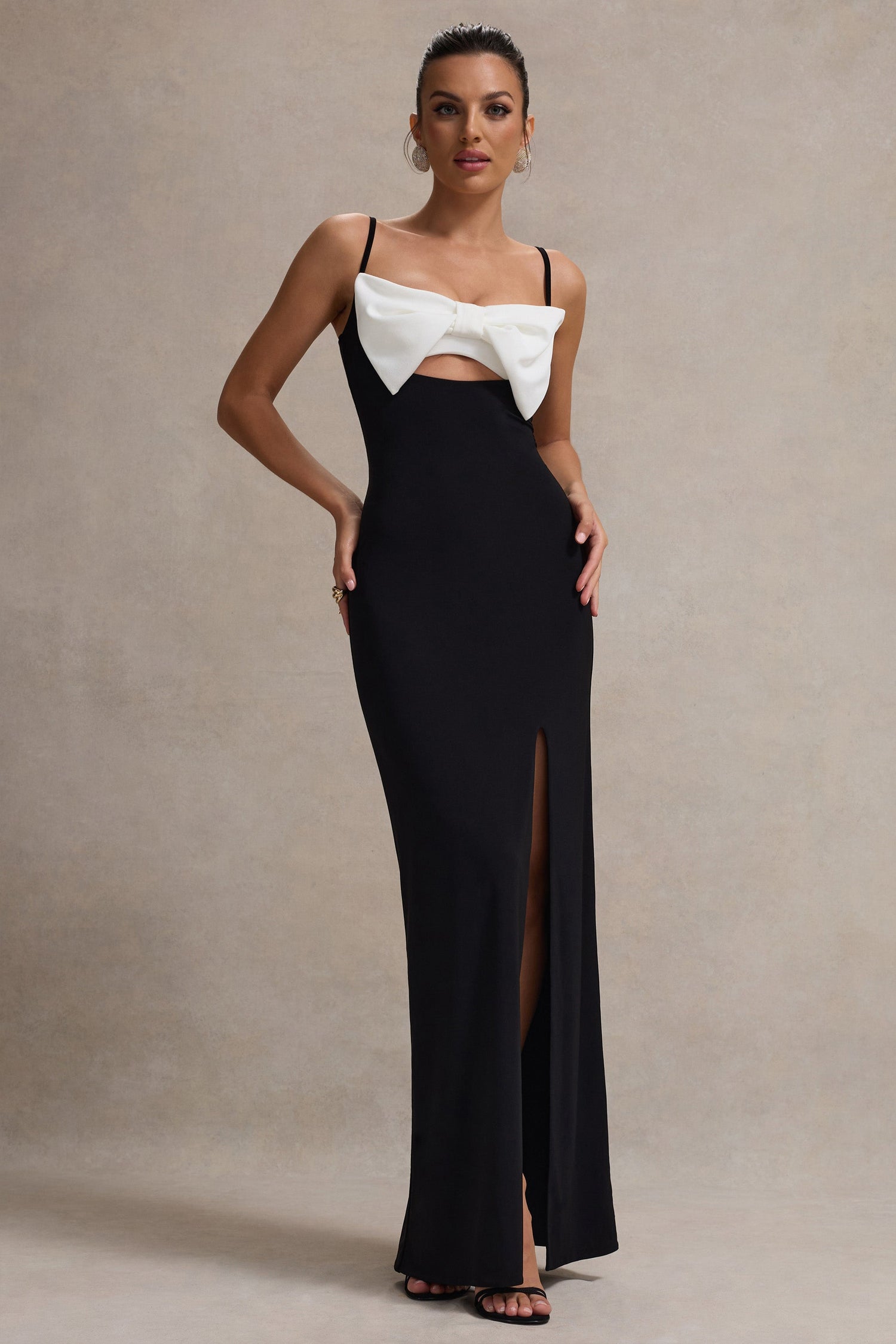 Emmalou | Black & White Strappy Split Maxi Dress With Bow