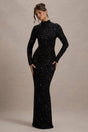 Galaxy | Black Sequin Turtle-Neck Long-Sleeve Maxi Dress