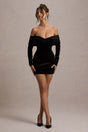 Gilda | Black Velvet Bardot Long-Sleeve Mini Dress