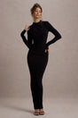 Hespera | Black High-Neck Long-Sleeve Gathered Maxi Dress