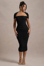 Paxos | Black Ruched Short-Sleeve Midi Dress