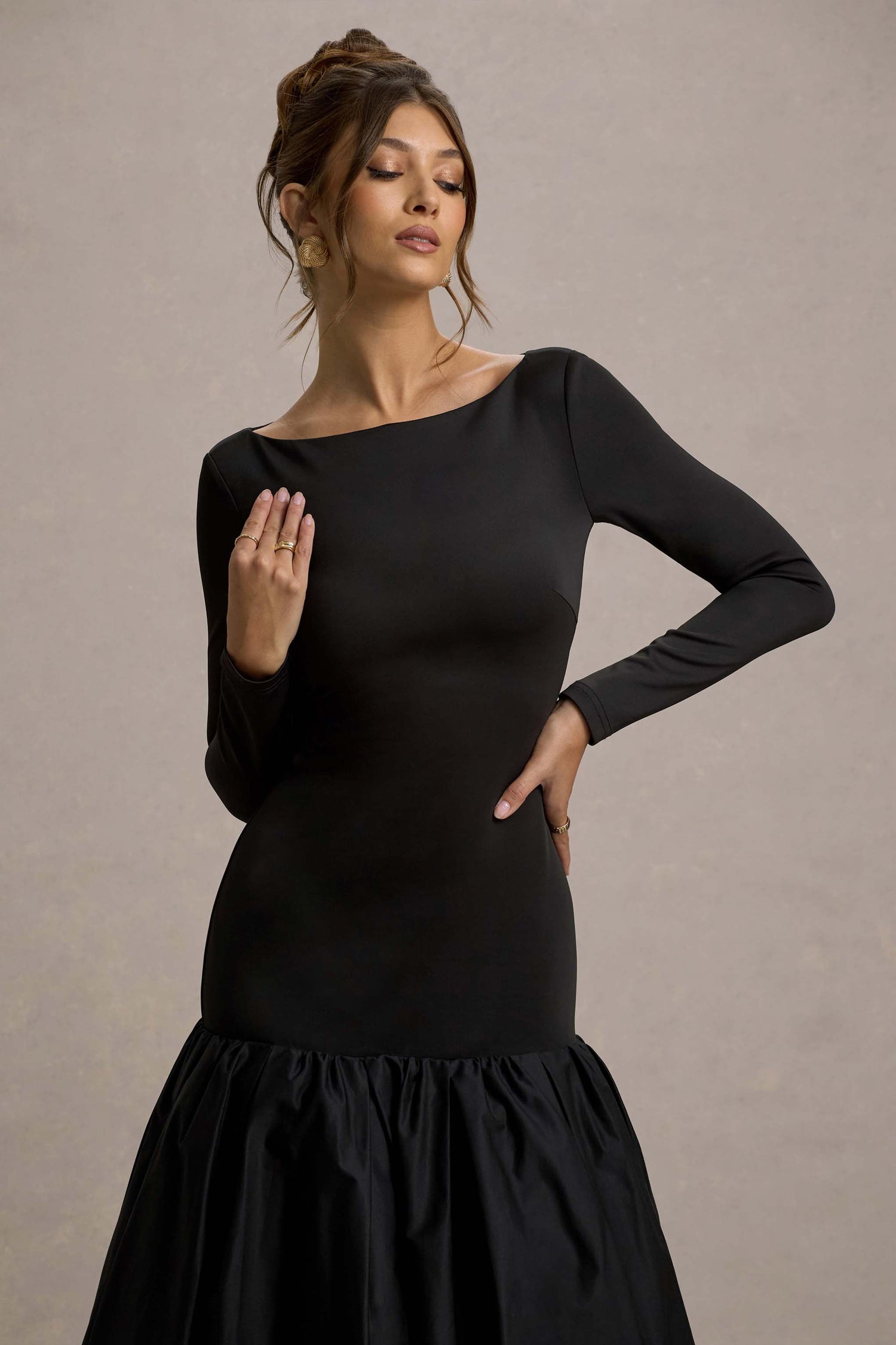 Perpetua | Black Drop-Waist Midi Dress With Volume Skirt