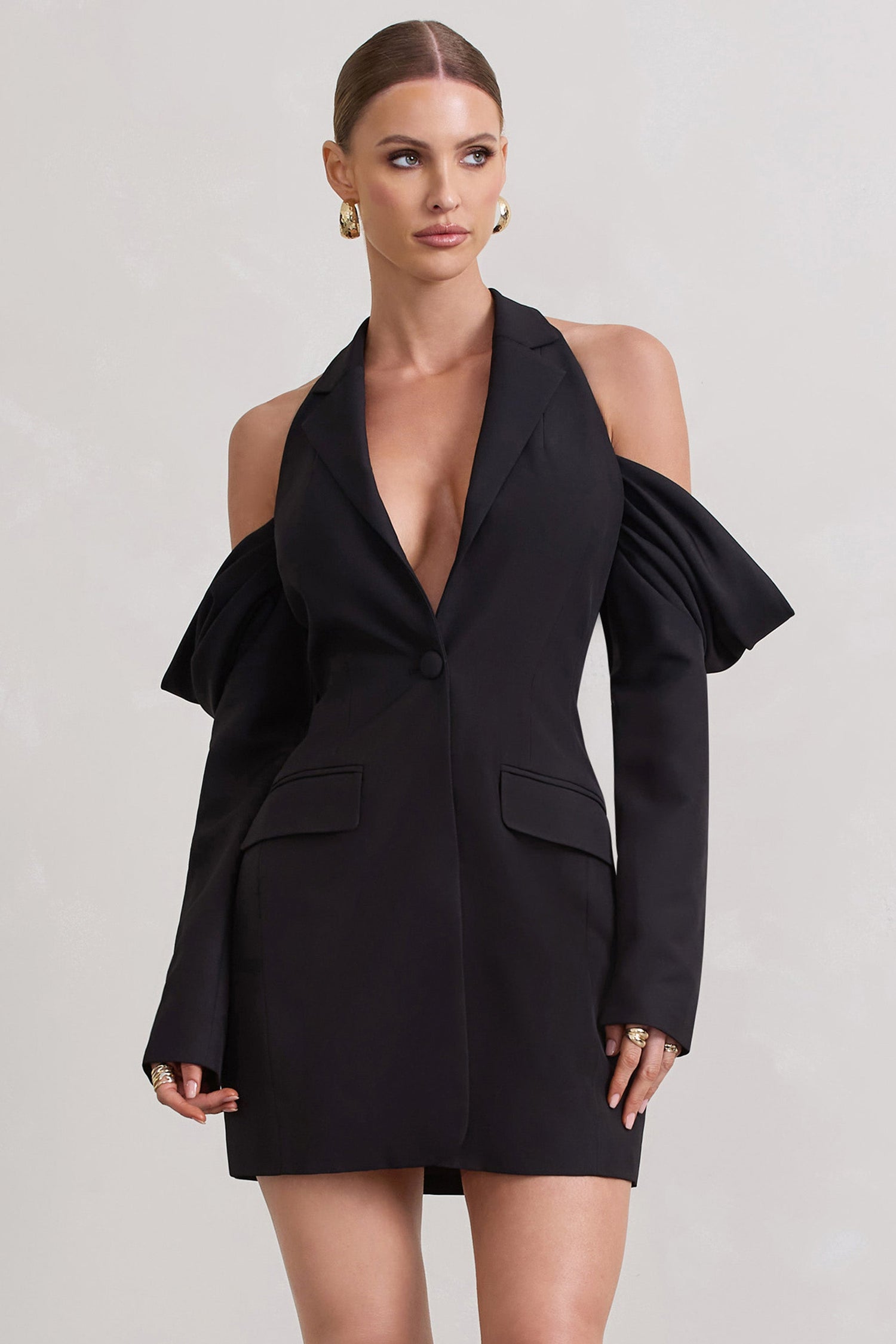 Your Night | Black Plunge Draped Blazer Dress - US 2 / BLACK is backordered and will ship as soon as it is back in stock.